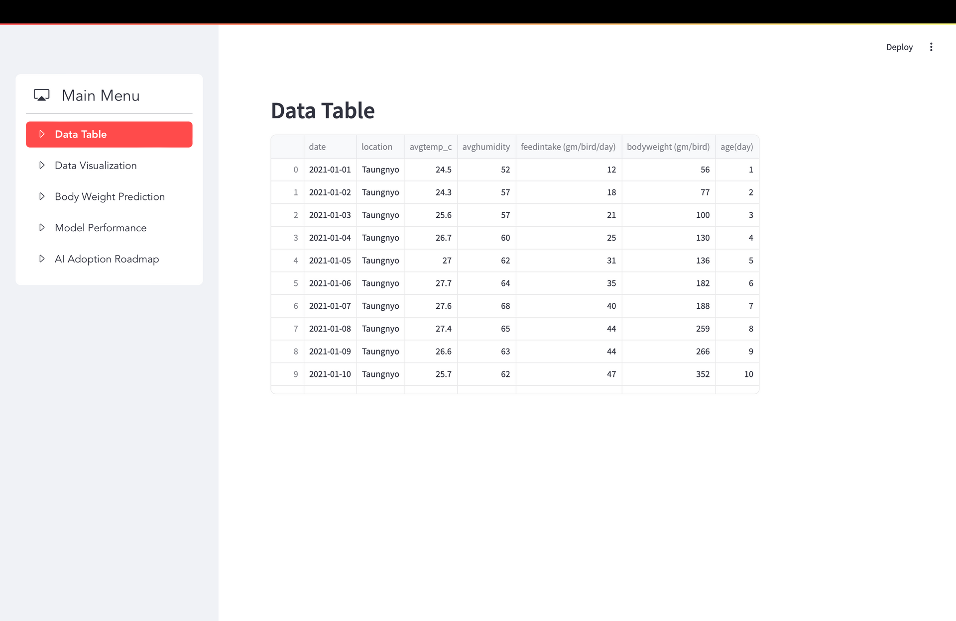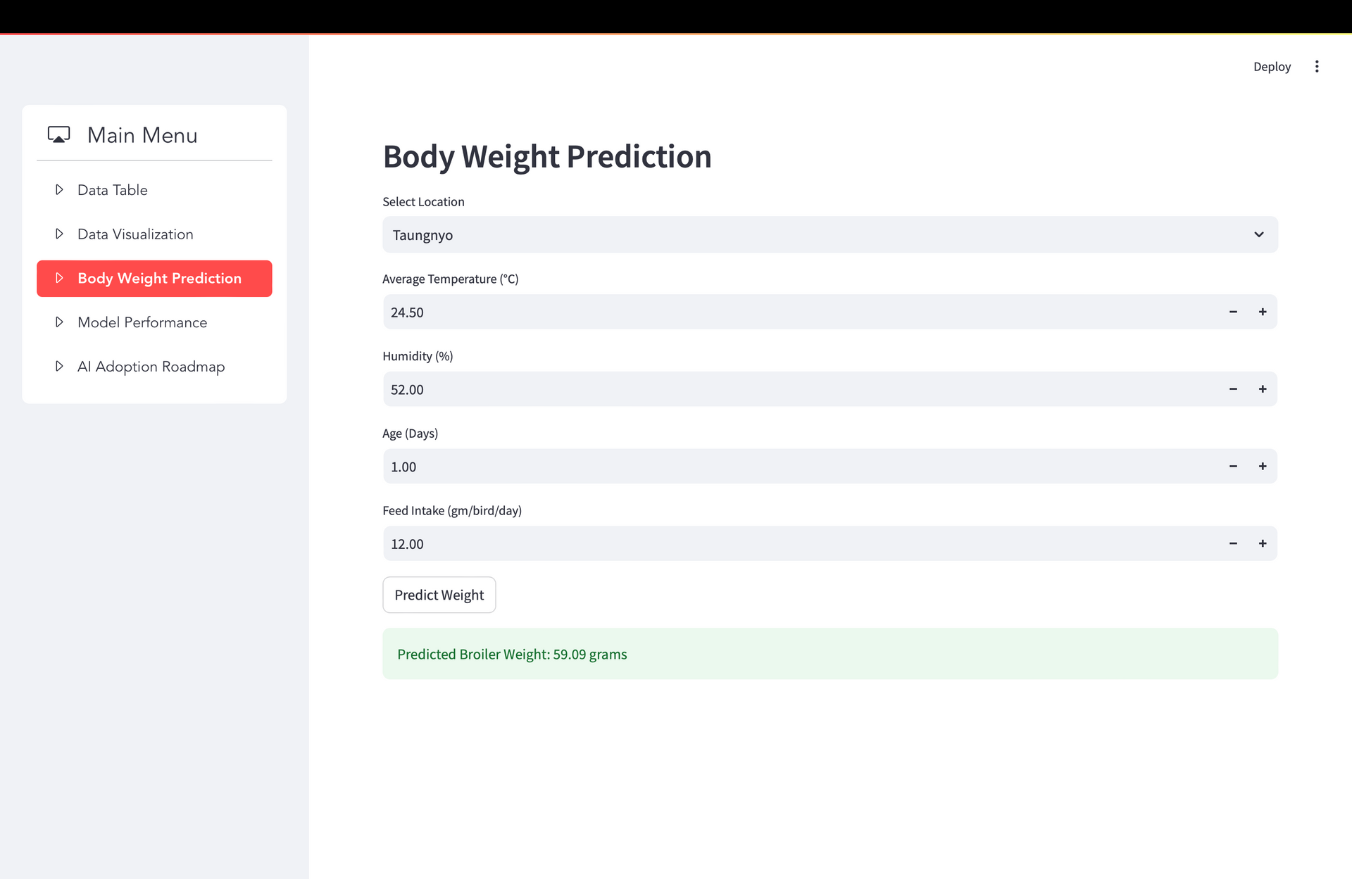 De Heus is confronted with a substantial difficulty caused by the deficiencies of existing manual procedures, leading to unsatisfactory financial returns and suboptimal animal welfare outcomes. The traditional methods, while widely accepted, fail to fully harness the capabilities of advanced data analytics and predictive modeling techniques, resulting in a decline in the efficiency of broiler performance. This research project aims to analyze the business background and present performance status of De Heus in the broiler industry. It seeks to identify the reasons behind any issues and potential remedies by examining relevant use cases within the same industry. The ultimate goal is to develop AI solutions that can enhance broiler performance. Furthermore, our research has determined that environmental variables such as temperature and humidity have had a significant impact on broiler performance. As a result, we have developed a time-series forecasting model to predict broiler weight based on factors such as broiler age, feed intake, temperature, and humidity in order to validate our findings. Significantly, this project will develop an AI adoption path for De Heus, enabling the use of our solutions to enhance broiler performance. Additionally, it will propose the inclusion of missing metrics that De Heus has not incorporated into their data gathering system.