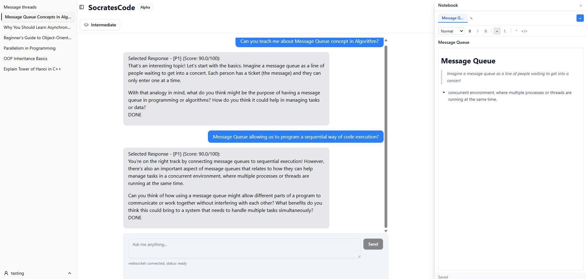 Behind the scenes, several AI agents with specialized roles work together. The system goes from analyzing user knowledge level, understanding progression then gives out approach recommendations in teaching students to giving out encouragement and asking guiding questions. SocratesCode sticks to one key rule: it never hands over the solution. Instead, it leads students through each step, allowing them to build the answer themselves.