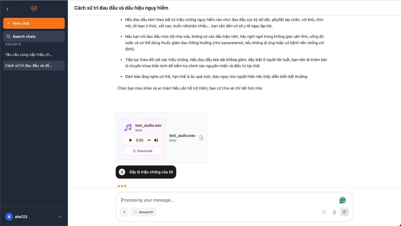 To ensure safety and reliability, AHA leverages GPT for reasoning, Whisper for transcription, and Hugging Face models for domain-specific medical tasks. Evaluation on large health datasets shows that AHA consistently outperforms baseline models in answer relevancy and response stability.