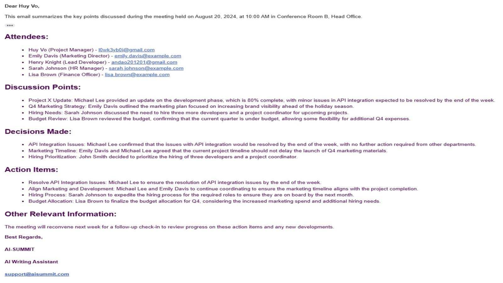 Al-SUMmit: Using Generative Al for Customize Meeting Summarization