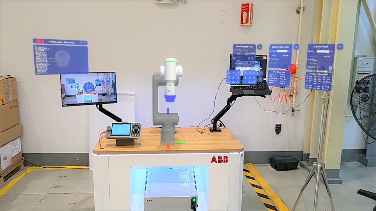 This capstone project intends to overcome challenges connected with operating articulated and collaborative robots. Existing programming methodologies need a high level of technical understanding and limit the efficacy of mixed-operational teams. To solve these difficulties, this project proposes an alternative Mixed Reality (MR) solution that uses gestures and interactions to provide a user-friendly and intuitive interface for robots operating in a mixed-reality environment. The proposed technique involves developing an MR application to revolutionise human-robot interaction and programming. The project hopes to give a simple, safe, and user-friendly method for managing robots by utilising gestures and interactions in a mixed-reality environment. This MR application will bridge the gap between expert programmers and non-experts, allowing for seamless collaboration in a range of industrial scenarios.