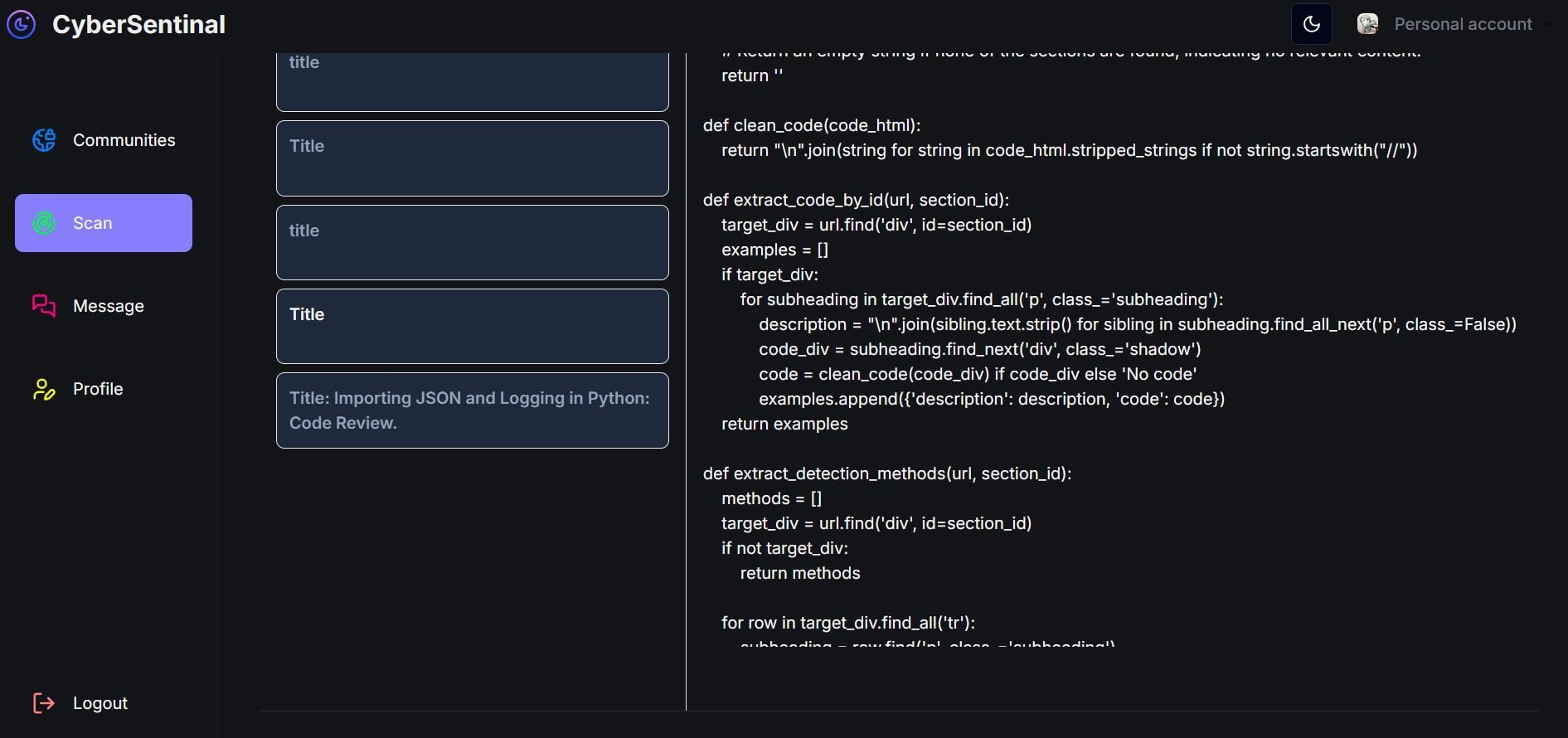 Users can input raw code, code file or Github repository link for the application, and it will quickly return results with high accuracy. Users can also sign-in to track their past code submissions and join in the Community Board to help other users or seek help for themselves.