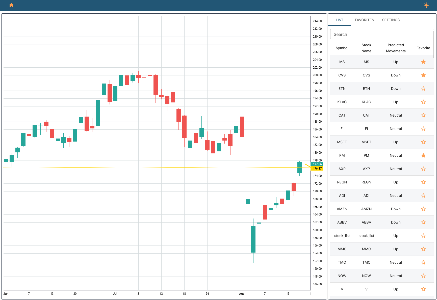 Stock market prediction is a difficult task due to the stock market’s inherently volatile and noisy nature [1]. Historically, stock market prediction is achieved through the usage of statistical techniques, but the advent of artificial intelligence (AI) opens up another approach for forecasting stock prices, which has been shown to produce more accurate predictions compared to traditional statistical analysis solutions [2]. In this project, we propose a product that leans towards a more practical application of AI in stock market prediction, more specifically the development of an AI model that predicts selected US stocks in different time frames, daily, weekly and monthly, alongside a web application that allows users to view those predictions. With the development of this application, we aim to help investor end-users make more informed investment decisions through the incorporation of prediction results from our solution into their investment workflow and using it as a confirmation indicator. The practical significance of a successful outcome for our project in practice is its usefulness, as being able to accurately forecast the future movements of the stocks enables investors to make informed investment decisions that can net profit [3].