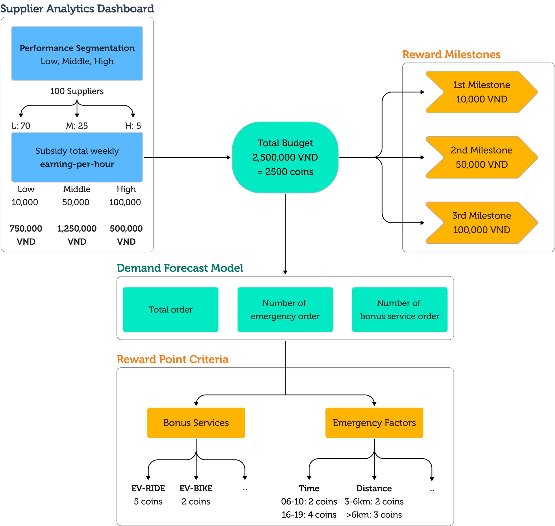 As an on-demand delivery service, Ahamove has been facing issues due to the existing reward policies not keeping up with the rapid growth of their platform. Without an adaptive planning strategy and technical solution, it had resulted in a decrease in retaining willing suppliers and customer satisfaction, as well as burning much more money than the actual need.
