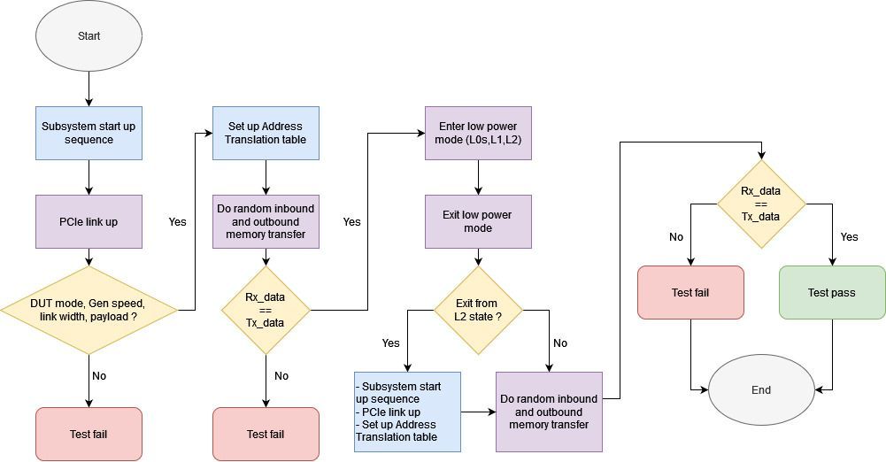 Faraday's PCIe 4.0 subsystem is a crucial component of a larger SoC design, connecting various IPs like the PCIe 4.0 Controller and PHY Controller. The primary objective of this project is to develop a robust and reliable Universal Verification Methodology (UVM)-based verification testbench for the PCIe 4.0 subsystem. The goal is to ensure the subsystem meets all requirements and functions correctly in both root complex and endpoint modes, including support for PCIe generations 1, 2, 3, and 4.
